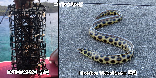 ✑ 八丈島では、岸壁で釣りをしていると、よくこのゴイシウミヘビが釣れるとか。これはウナギの仲間で毒はないそうだが、不味くて食用にはならないそうだ。