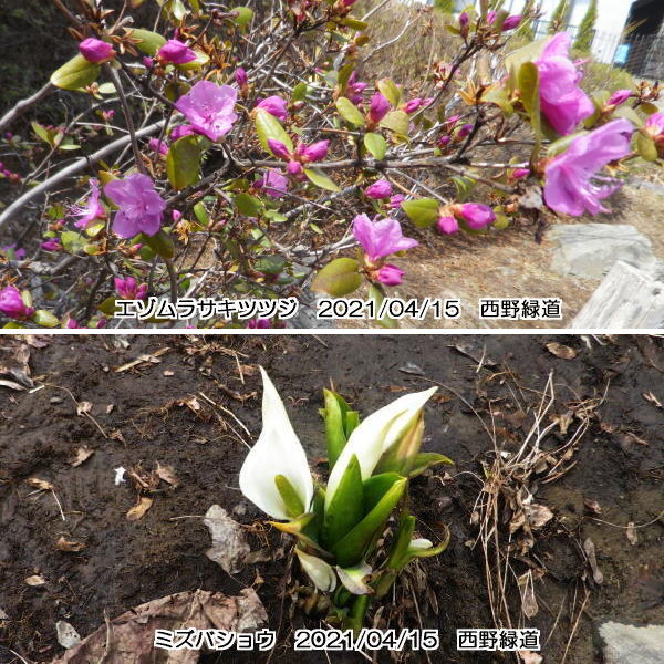 🌸 帰りがけに西野緑道に寄ってみると、3日前に見たカタクリやキクザキイチゲが数を増しており、さらにエゾムラサキツツジやミズバショウを見ることが出来た。