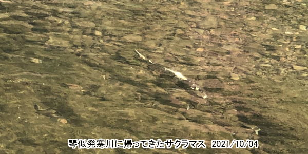 🐟 今日は、近くの琴似発寒川の右股橋から1.5キロほど下流で、ヤマメが降海して戻ってきたサクラマスの遡上を見に行ってきた。取水口付近の浅瀬で、40センチほどに成長した成魚が15頭前後集まっており、中にはオスがメスを追いかけて、産卵を促しているものもいた。