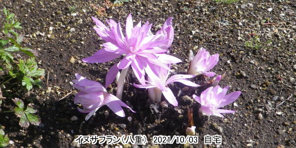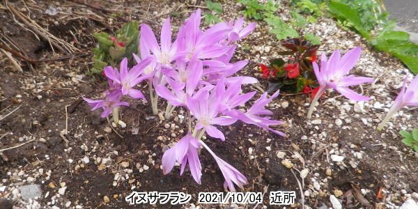 🌹 自宅ではイヌサフランの八重が数株咲いた。また近所の庭や歩道の植木枡には、あちこちで一重のものが咲いている。