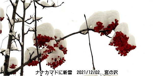 ❄ ナナカマドの赤い実はまだほとんど残っており、積もった雪の白が映えている。
