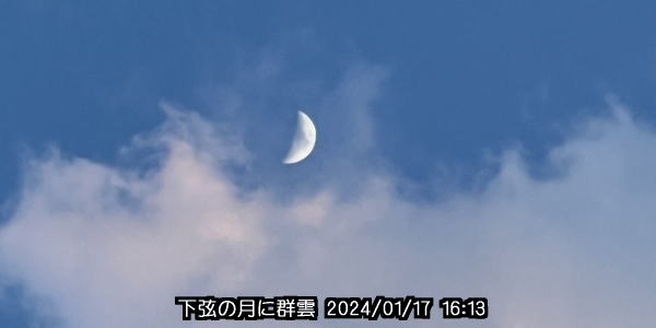 ☔ 氷点下が続いているので、雨こそ降らなくなったものの、雲がよく走る。下弦の月がちらりと見えても、乱れ走る雲にすぐ隠されてしまう。