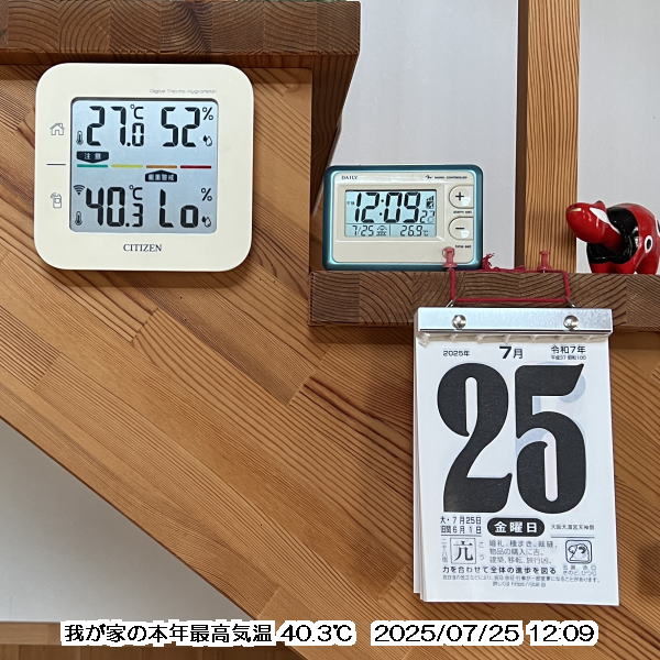 🌞 今日は、太陽の直射熱がジリジリと上昇し、12時09分に外気温が 40.3℃に達した。