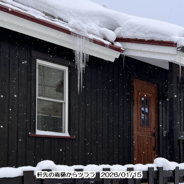 ※ 自宅に戻ると、ヒーターを入れてある軒先の雨樋から、ツララが下がっていた。